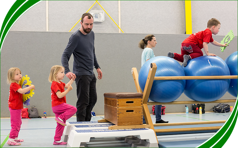 Koordinationsvermögen und den Gleichgewichtssinn. Wir bieten euch in unserem Kurs ein fröhliches, kinderorientiertes Bewegungsangebot für Kinder mit ihren Eltern. Die Übungsleitung leitet dabei die Kinder und die Eltern an. Mit Hilfe der Eltern und der