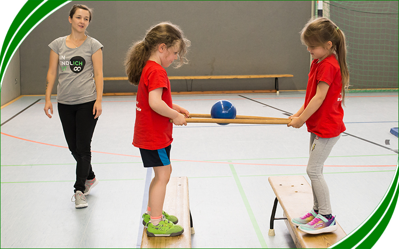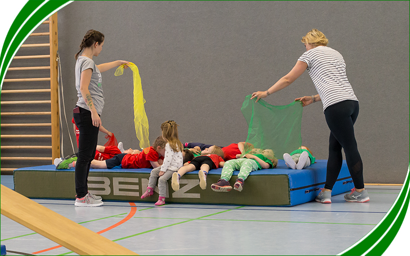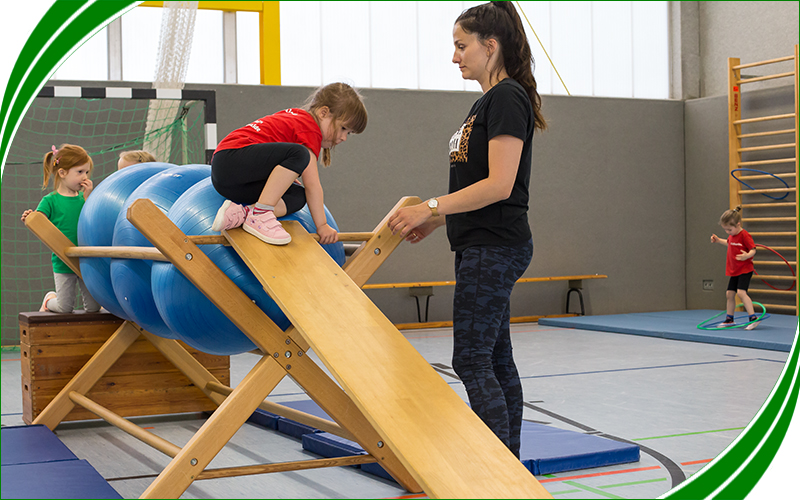 Übungsleitung erleben die Kinder durch Nachahmen und eigenständiges Probieren die Bewegungen. Vom kleinen Spiel mit Alltagsmaterialien bis hin zum Kennenlernen von Bewegungslandschaften ist alles dabei. Somit werden alle Sinne der Kinder angesprochen, um sie bei ihrer Entwicklung bestmöglich zu unterstützen.